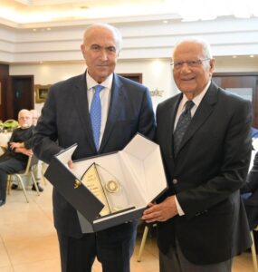 في الختام، قدم مخزومي للدكتور السماك درعاً تكريمياً، متمنيا له دوام التوفيق.